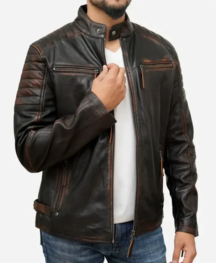 Cafe Racer Distressed Brown Leather Jacket