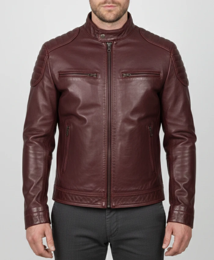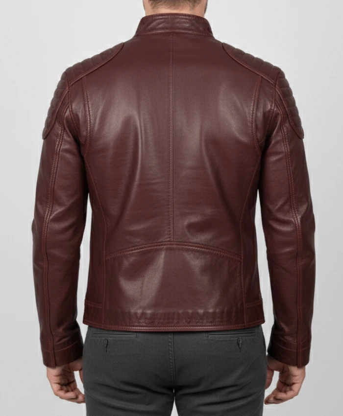 Fashion Waxed Quilted Burgundy Biker Leather Jacket