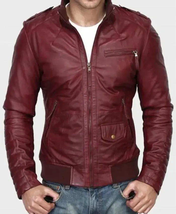 Mens Kevin Burgundy Shearling Leather Jacket has slanted zipper pockets on the chest and waist and two inside pockets. It has a quilted back, shoulder, plus a rib-knitted hemline that offers you a nice look. The burgundy best leather jacket has a stand-up collar and full-length sleeves along with zipped cuffs. It comes in a beautiful burgundy color.