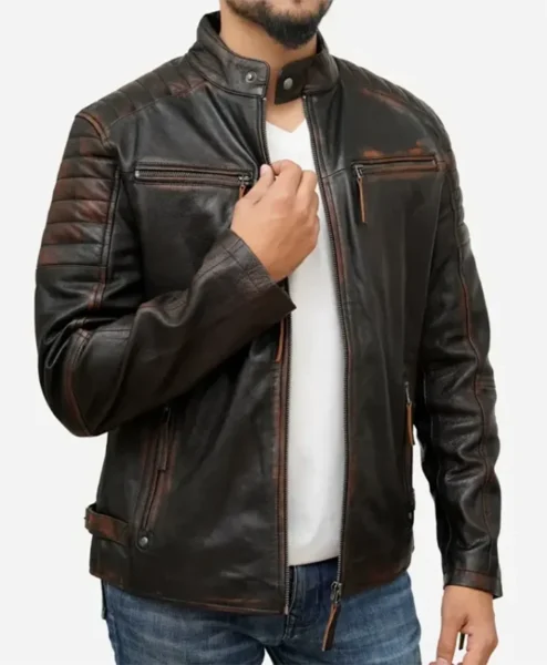 Mens Vintage Distressed Brown Motorcycle Jacket