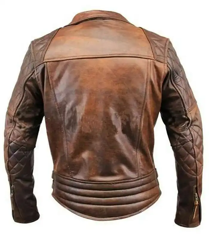 Mens Vintage Distressed Brown Quilted Motorcycle Real Leather Brando Moto Style Biker Jacket
