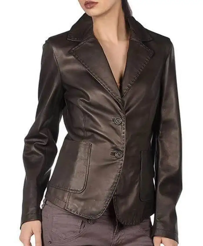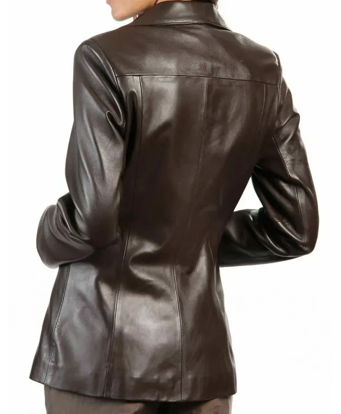 Women Silky Leather Brown Blazer Coat For Sale